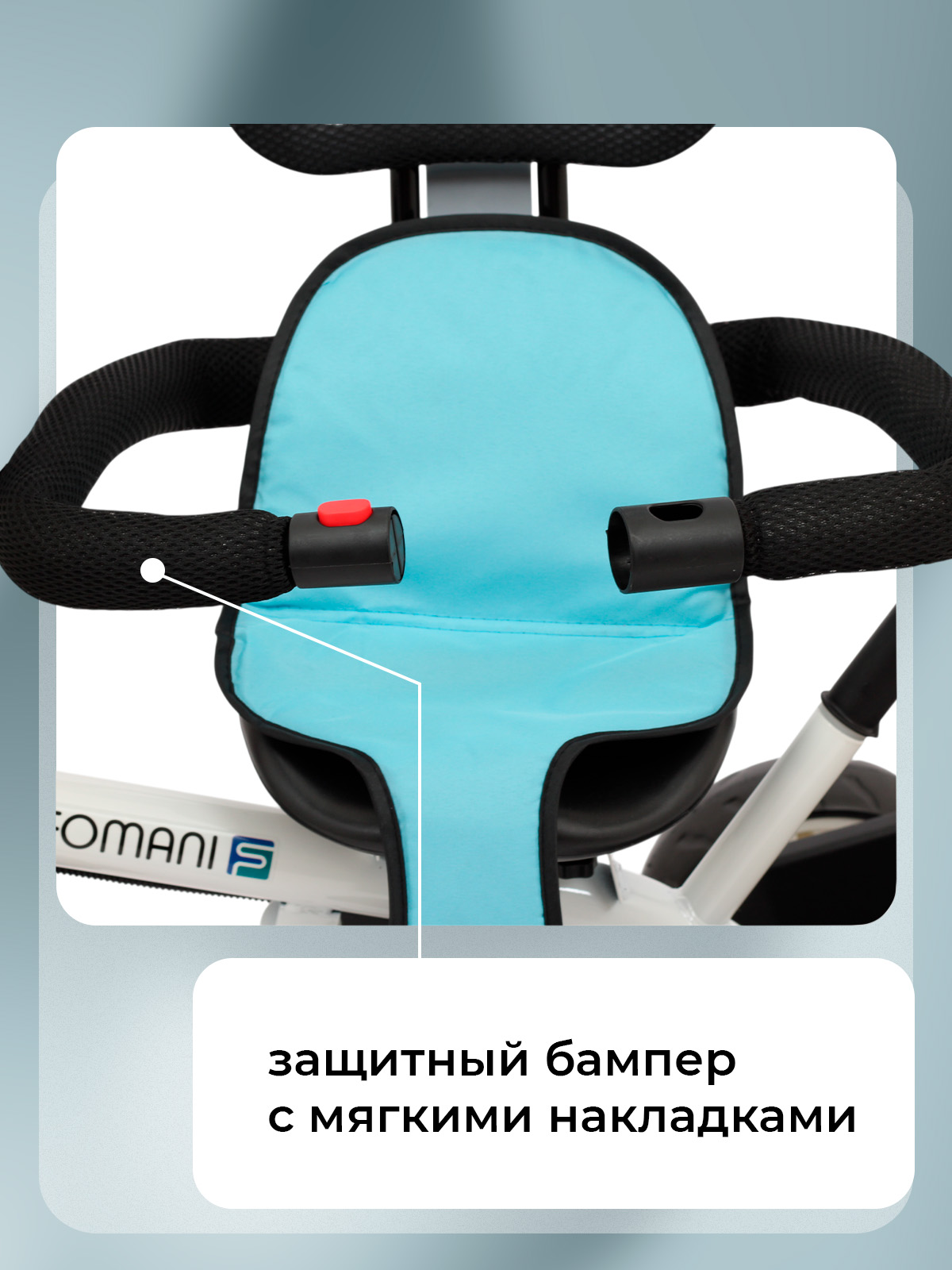— съемный передний защитный бампер, который надежно зафиксирует ребенка в велосипеде;