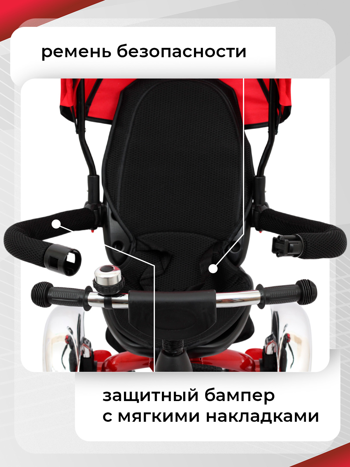 — съемный передний защитный бампер, который надежно зафиксирует ребенка в велосипеде;